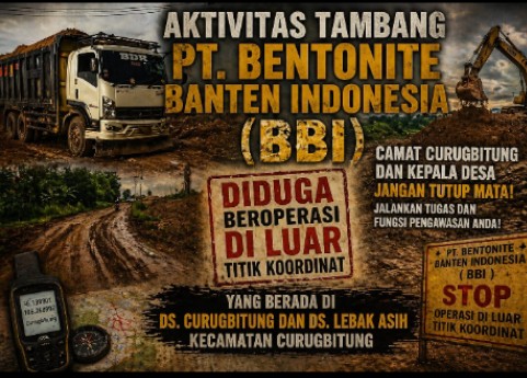 Lebak-Dugaan pelanggaran kegiatan pertambangan oleh PT. Bertonite Banten Indonesia (BBI) mencuat ke publik. Perusahaan tersebut diduga melakukan aktivitas penambangan diluar titik koordinat yang telah ditetapkan dalam Wilayah Ijin Usaha Pertambangan (WIUP).