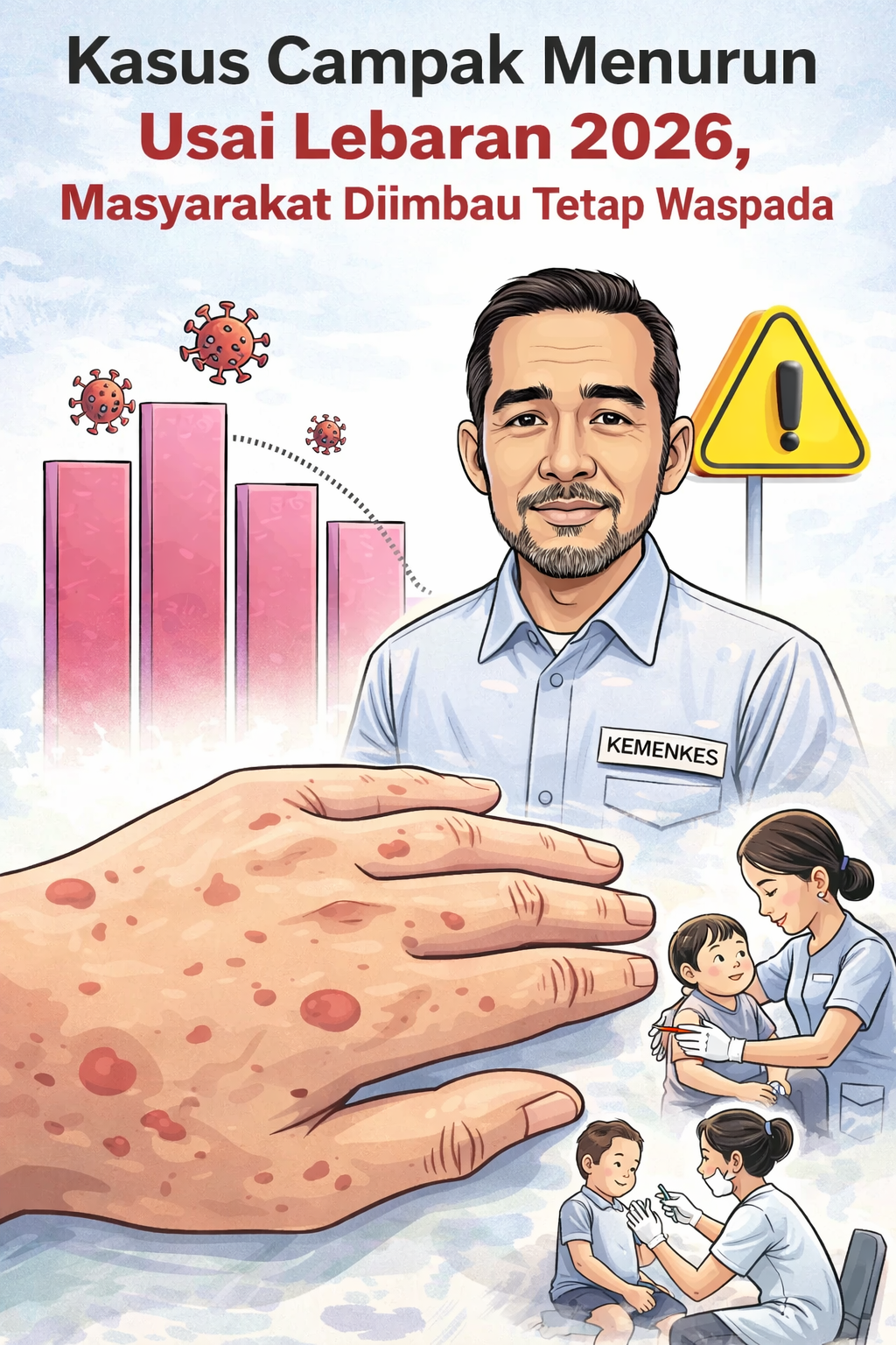 Jakarta I redaksinews.info I Kasus campak di Indonesia menunjukkan tren penurunan setelah periode Lebaran 2026. Data dari Kementerian Kesehatan (Kemenkes) mencatat bahwa penurunan ini didukung oleh pelaksanaan imunisasi massal serta edukasi kesehatan yang gencar dilakukan kepada masyarakat. Meski demikian, masyarakat diimbau untuk tetap waspada terhadap potensi penyebaran kembali penyakit tersebut.